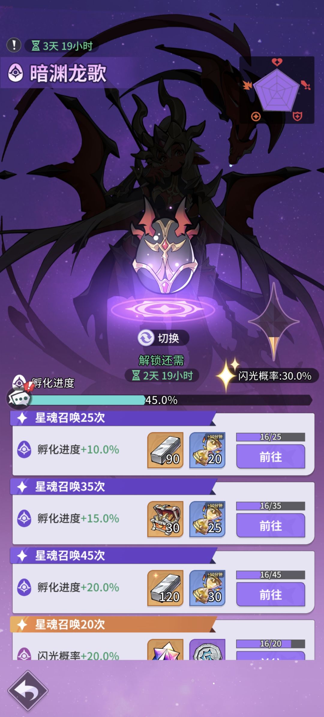 6.探宝秘典:比较重要的途径获得龙渊角色,分为两种类型,每小时可以刷新一次,记得刷到好东西再抽,抽完记得刷新再10连,好东西都是一次性的。一般池子:刷到橙色蛋。龙渊池子:刷到特定龙渊角色蛋再10连。