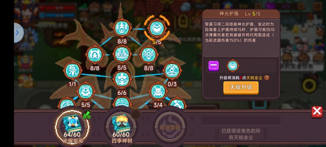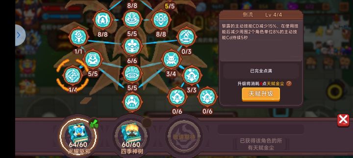 5.技能加点,先点核心,然后技能冷却点满,剩下主要点中间的,右上角那个盾,我建议只点一级,也就是技能可以用2段就行,右下角全是辅助类,看个人喜好来点