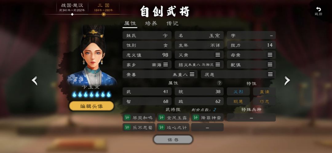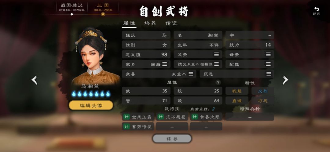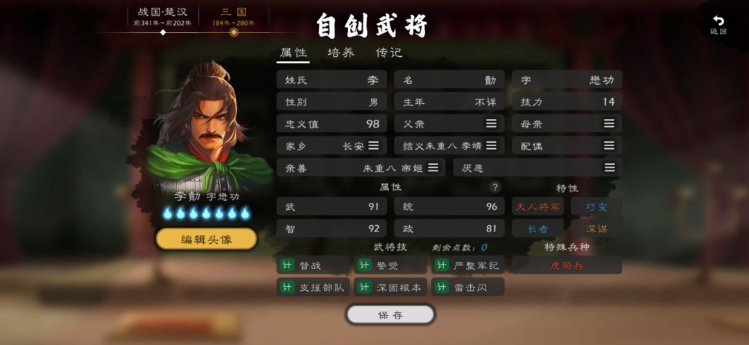 优点:目前版本综合最强扎营将,坐地有免伤加成,带虎骑普攻有狂怒,野战不弱。