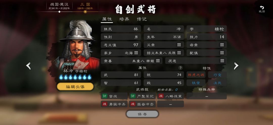 优点:目前版本攻防最强扎营将,坐地攻防双强。野战带丹阳有先攻能一步一扎缓步推进,带虎卫就是个好奶妈。
