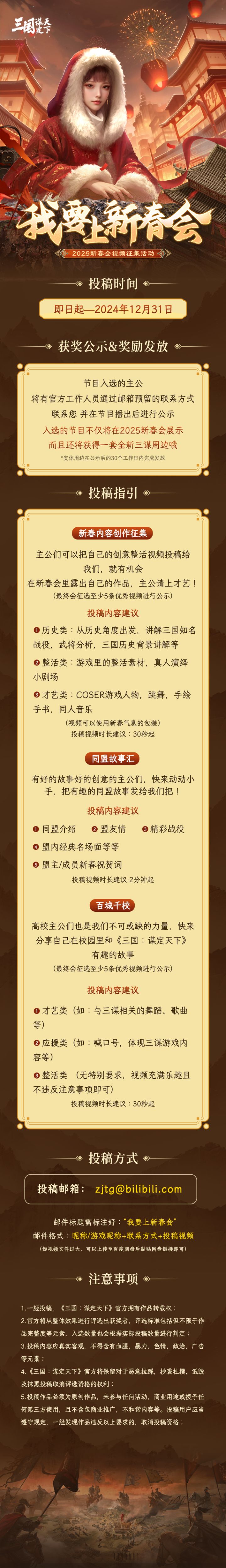 我要上新春会!《三国:谋定天下》2025新春会视频征集活动开启