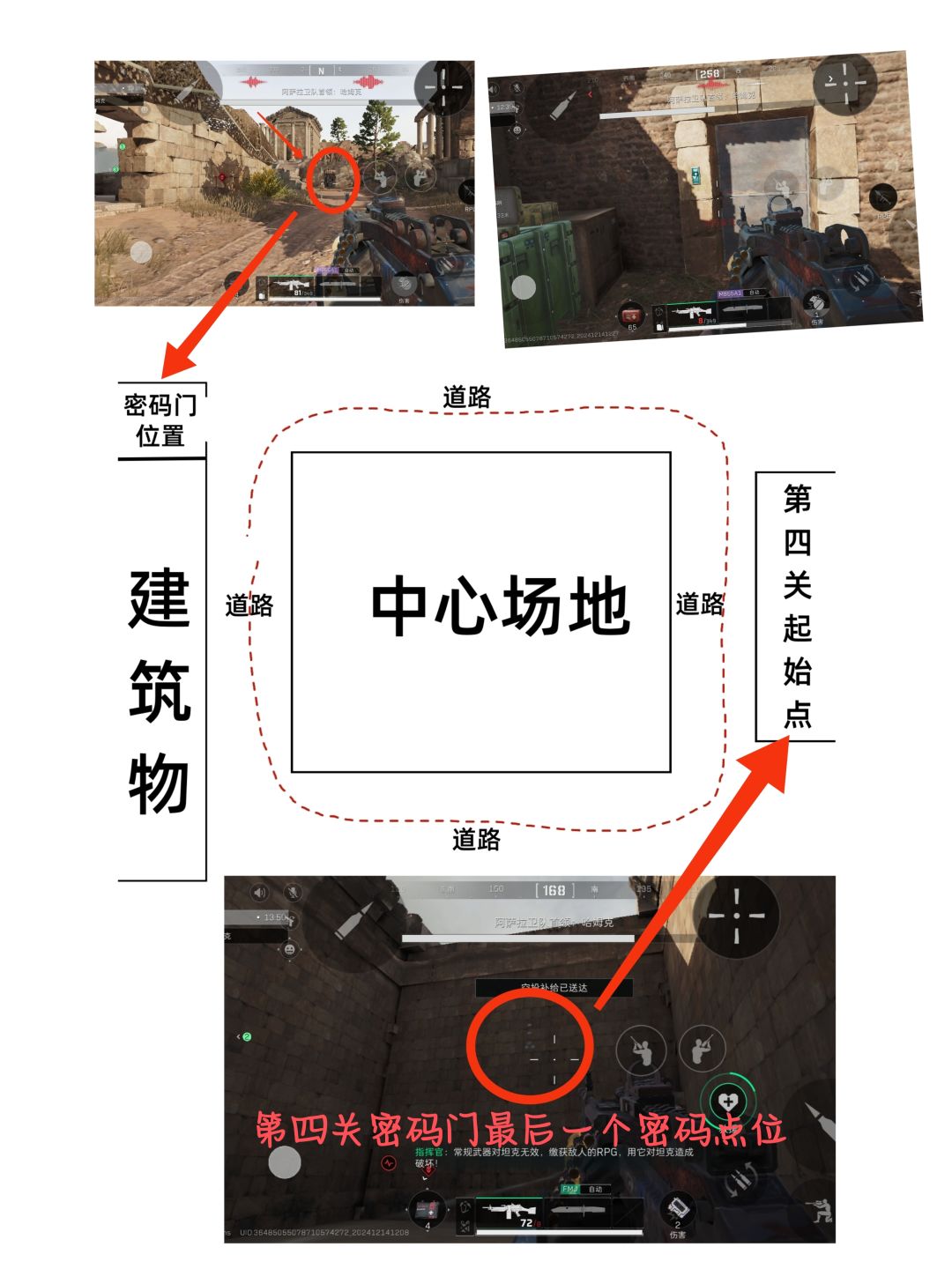 2.第二个彩蛋就是图二下面的步骤,在装甲车拐弯后的道路,具体可以我们可以通过路边的“字母牌”来定位。