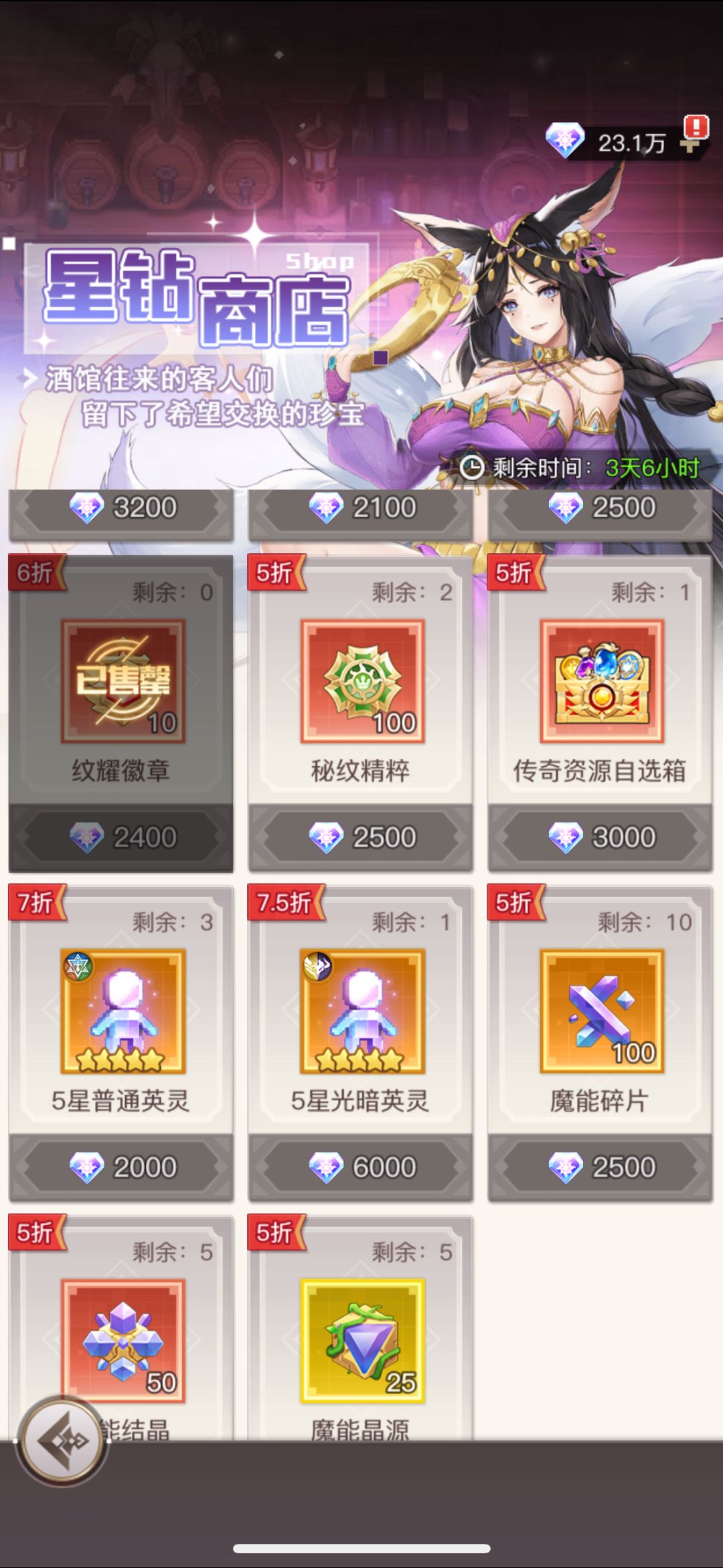 白嫖要买那些,一个是骰子,拉满,买满。骰子里面的神秘商人卖的阵营抽取券比商店折扣低一点,还有高级探宝,高级探宝每个系神魔会有一个,光的是龙女,野兽是绯花,其他没刷出来,但是参照模版,暗的应该是德古拉,高级探宝一定要确定的才抽,那种笼统的蛋直接无视