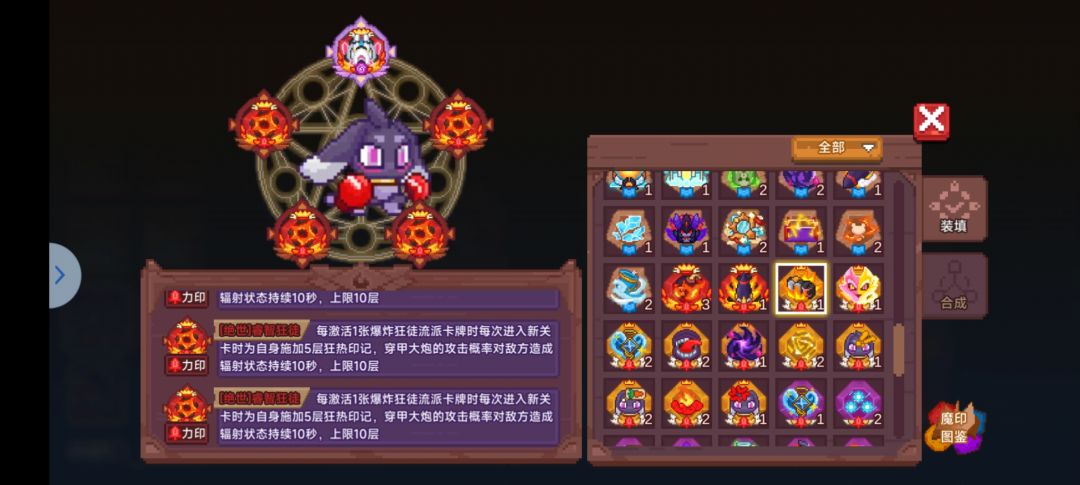 4.炮台万灵:目前最舒服的一套 5次技能快速清怪 图一3卡变身秒掉boss 但是好像和万灵关系不大 魔印携带兔子4红睿智炮台魂印
