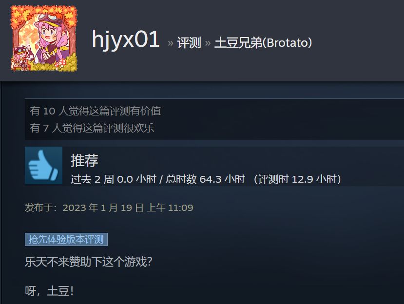 但另一方面,《土豆兄弟》的模仿者却并不多见......所以作为一个《土豆兄弟》玩了60多小时,最近一次更新之前所有全角色全难度5通关的玩家,我其实也比较期待能有类似的游戏出现。