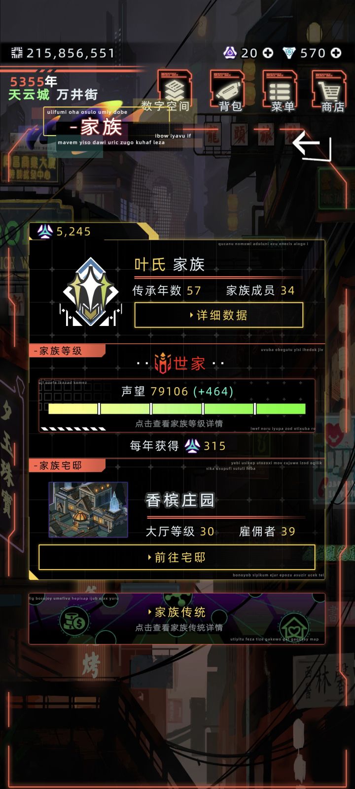 家族传统:亲情可以提高家族成员生育率,天赋可以提高家族成员的属性以及属性的提升,财富可以提高家族资金(感觉用处不多。
