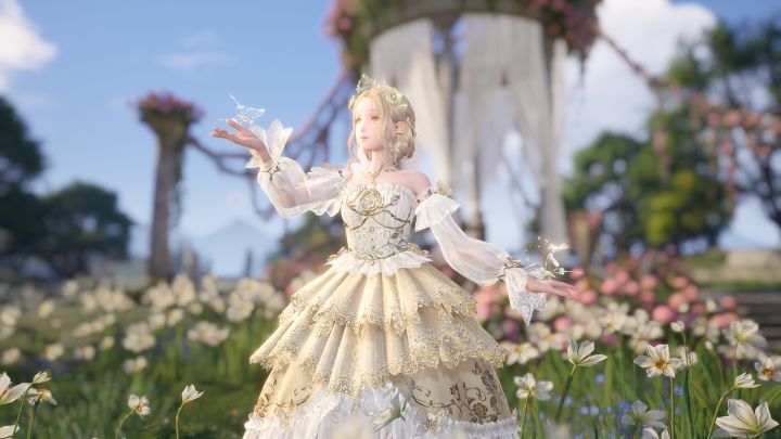 #无限暖暖全球公测 #无限暖暖包出片的 #无限暖暖摄影 #在全世界遇见无限暖暖 啊啊啊天鹅羽亭和花海特别美,也不用怎么去调光和角度就已经很漂亮了!心愿金蔷薇真的是怎么拍都好看~