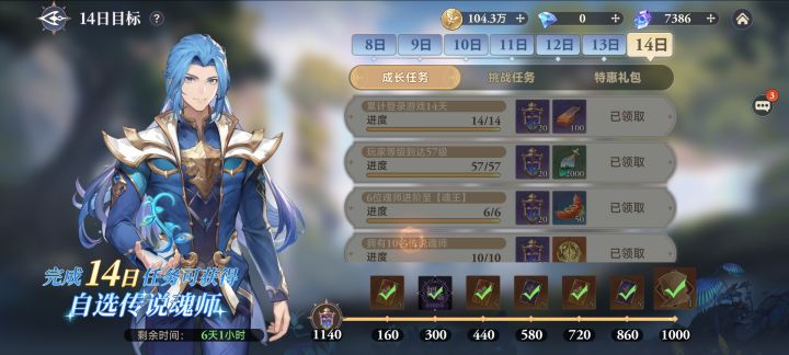 4.新区进度:第14天,尘心可以红五,不过不够12个三星,差一个武魂三星武魂,武魂水晶还没抽等武魂赠礼