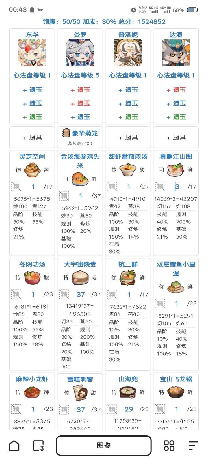 全拉满306w分,不过排名没奖励,还是少做点省食材。