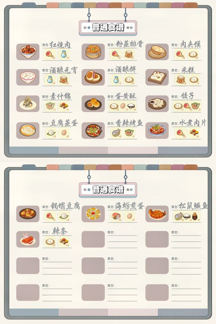 食谱分为普通食谱和特殊食谱,普通食谱直接研发即可,特殊食谱需选择对应的学员🔍💡[普通]红烧肉:肉+酒