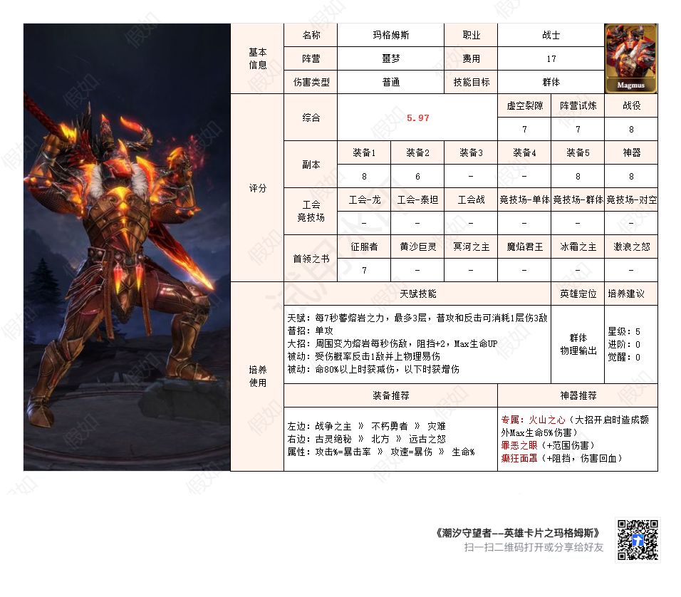 本帖为个人发布的有关潮汐守望者的系列攻略的索引贴,方便查找。**关于英雄综合评分算法说明**目前,综合评分是在单项评分的基础上,结合英雄泛用程度,用一套算法计算得出,大部分英雄评分与使用感受符合,不排...