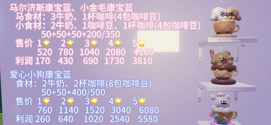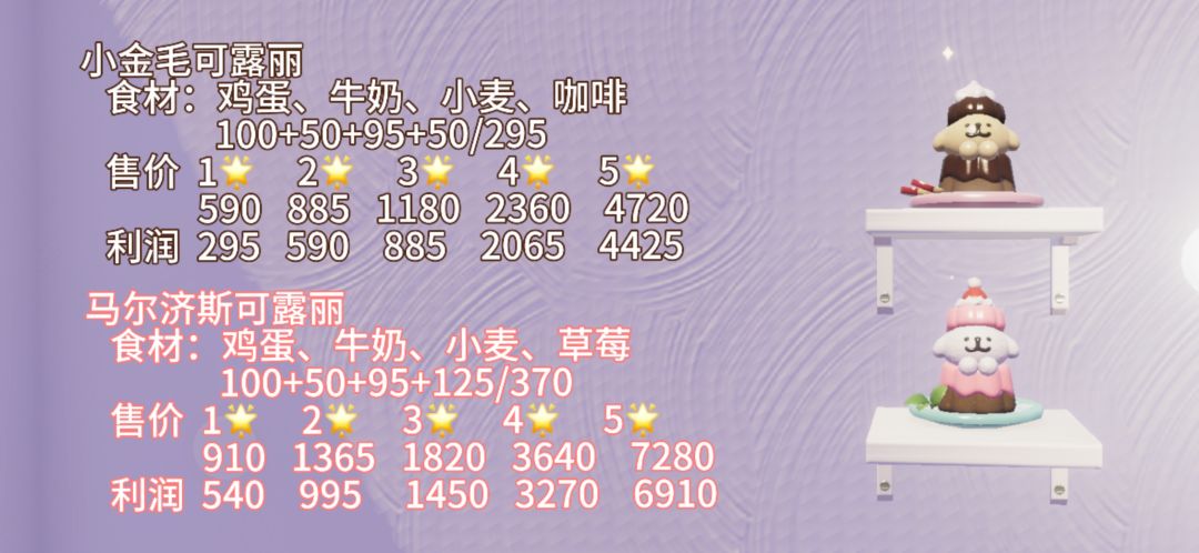 小镇昨天上新的五个食谱 成本售价利润集齐了!!快来看看值不值得肝一波