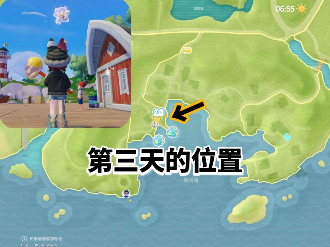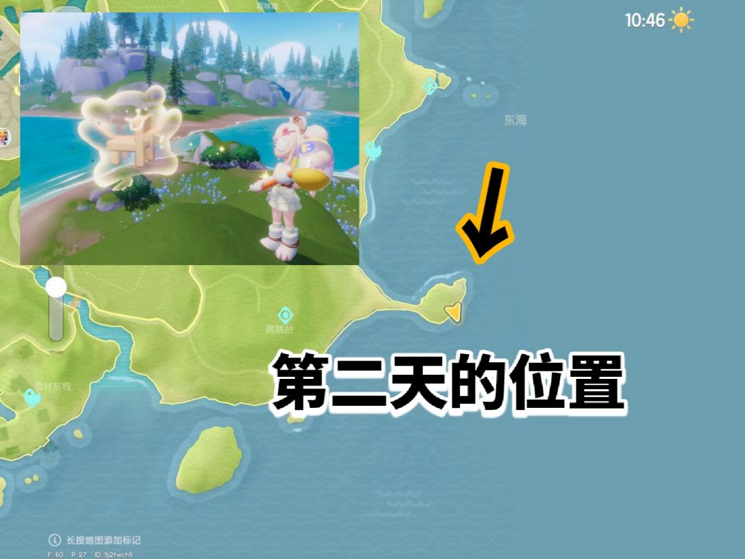 第一天没截图,但很简单,就在花田鲸鱼山上那个眼镜男孩旁边的热气球下,在长椅上👌(想想还是补了图,顺便尾图贴了超美新动作~~)