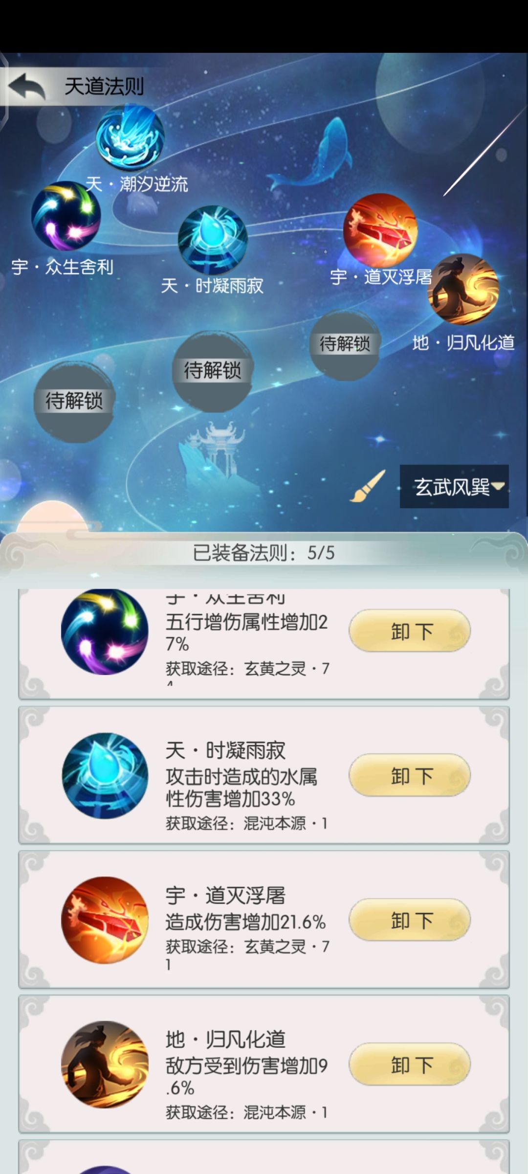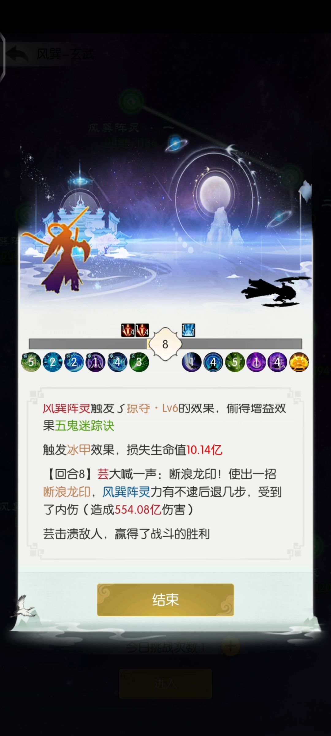 本体技能:黄泉诀-玄冰葬-不灭魔尊-五鬼迷踪诀-癸水封海咒-断浪龙印,需要注意的是:风巽最后数个小关,需要把最弱的攻击技能配合最强的仙灵(凤鸣),以确保你的每个攻击技能在无需暴击的情况下打到庇护上限值,这些关卡我们能造成的总伤害只比伤害总缺口高一点点,不能做到此点将无法战胜怪物。