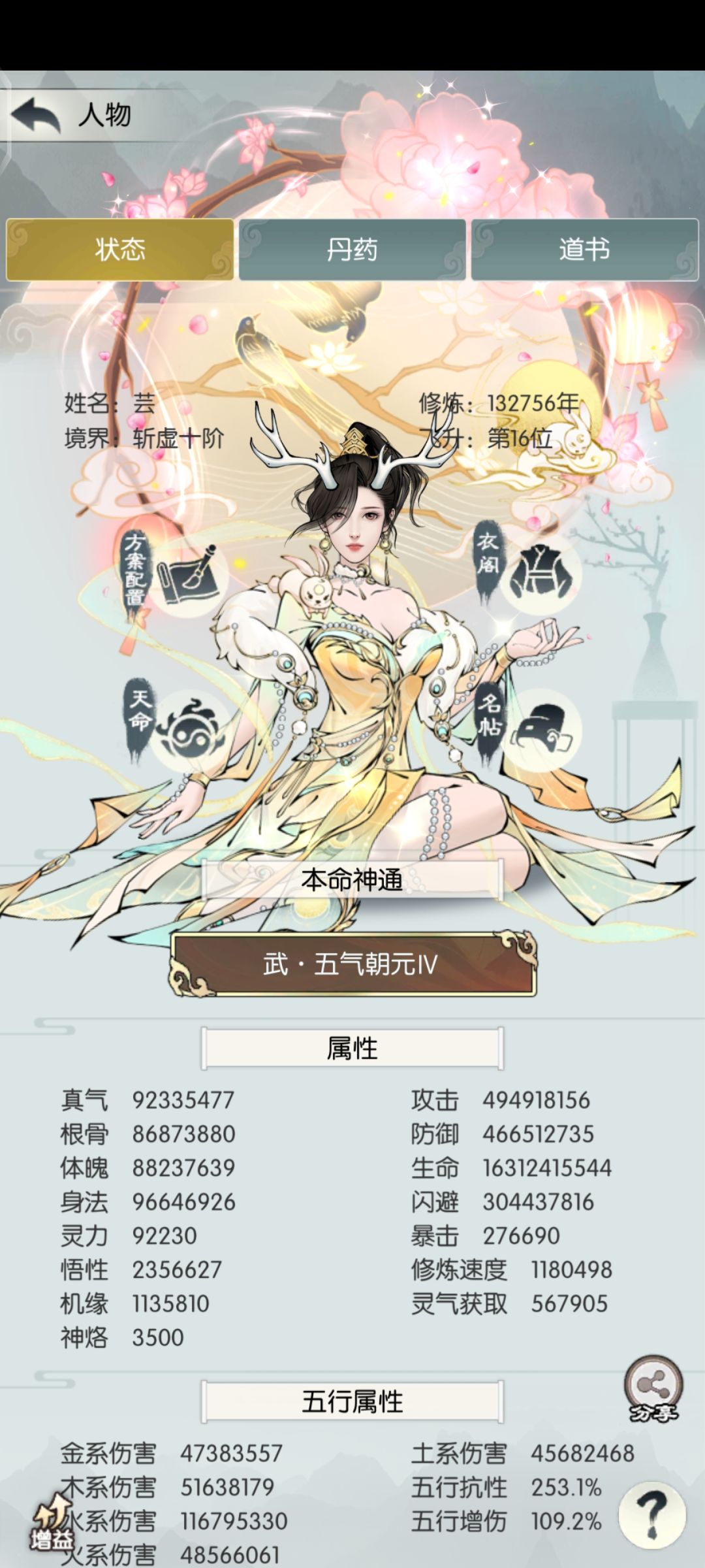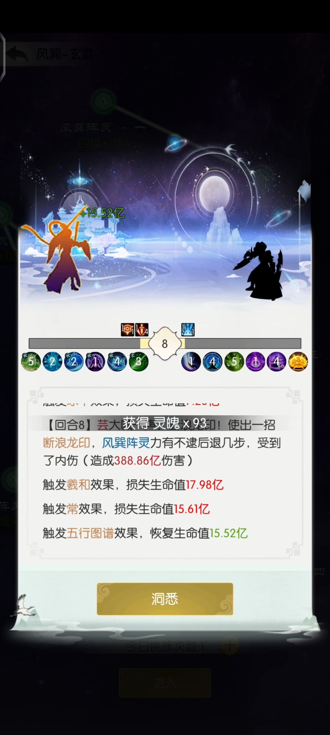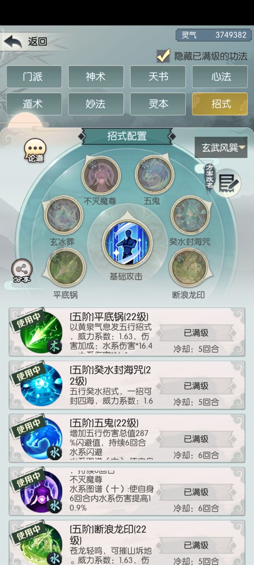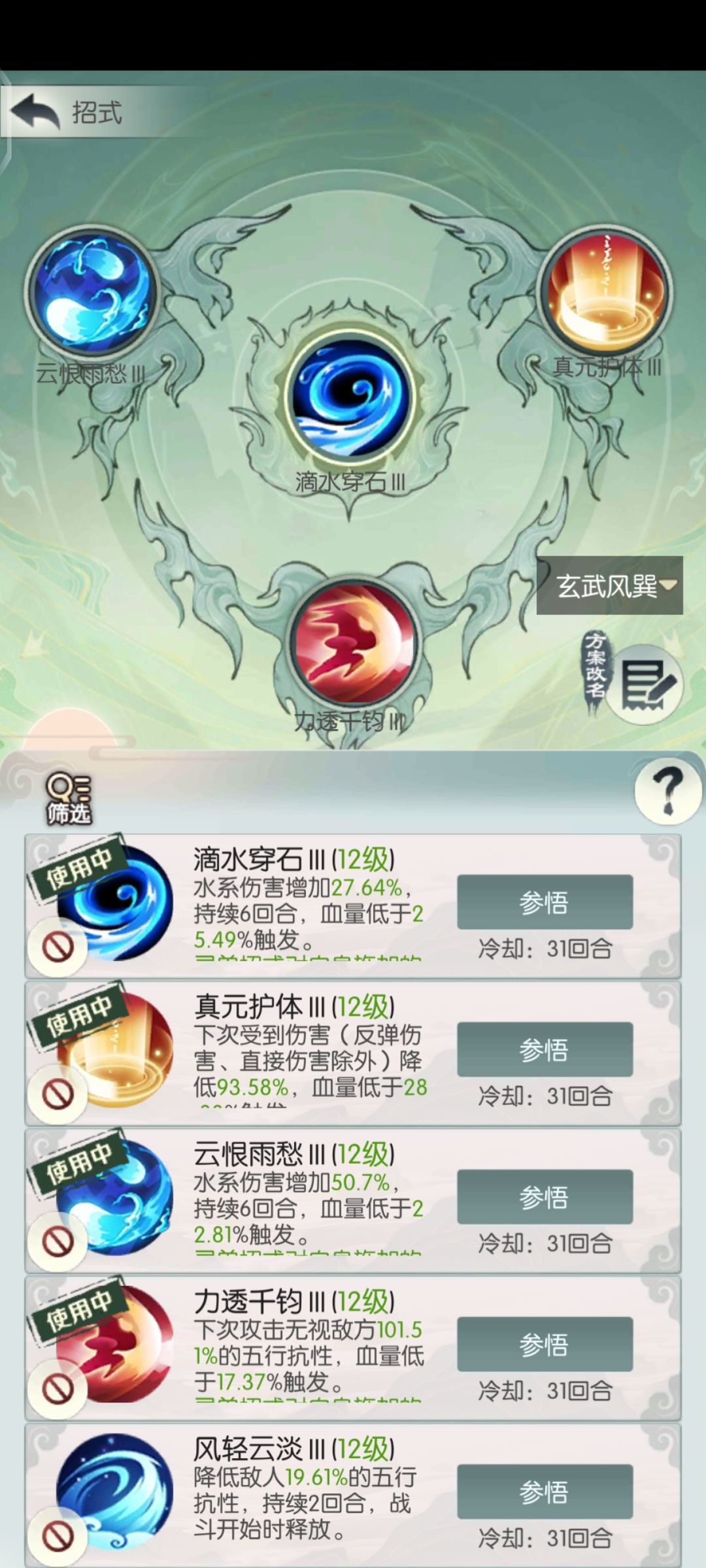 展望一下:如果有人面板五行值比我高20%~25%,可以很轻松的让副五行攻击打到庇护上限时,也可以使用“飞叶飘花”替换“滴水穿石”,还是可以大幅提高获胜概率的[表情_开心]
