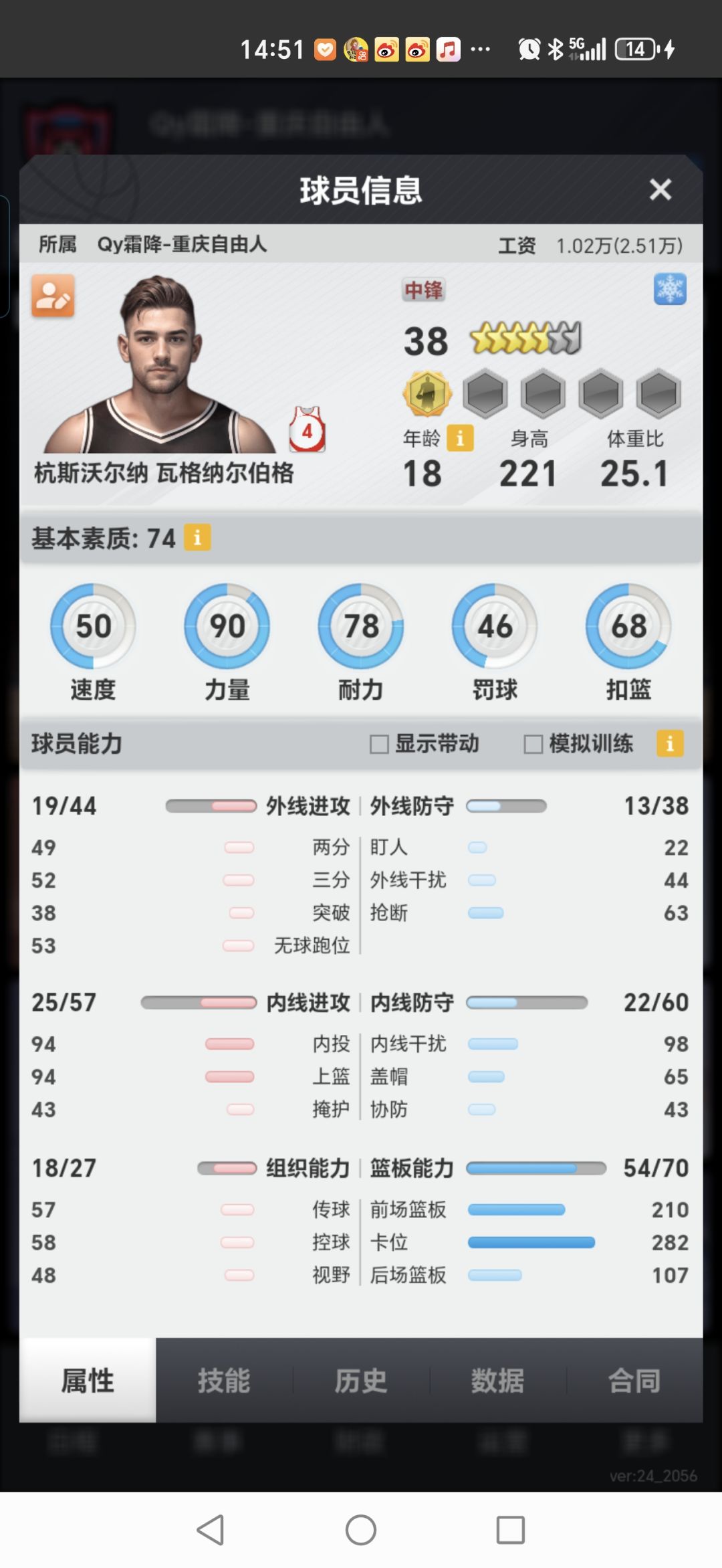然后就是条子,篮板条子绝对是第一因素,为了篮板条子高,可以舍弃一定的内干,毕竟内干的作用就是用来防内投,防突破的!所以我会舍弃内干。