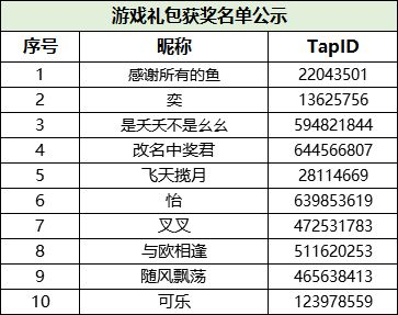 感谢众位大人的积极参与,恭喜以下几位大人获得价值100元的游戏礼包一份!请各位大人进入QQ群:718320697联系客服进行领取喔~