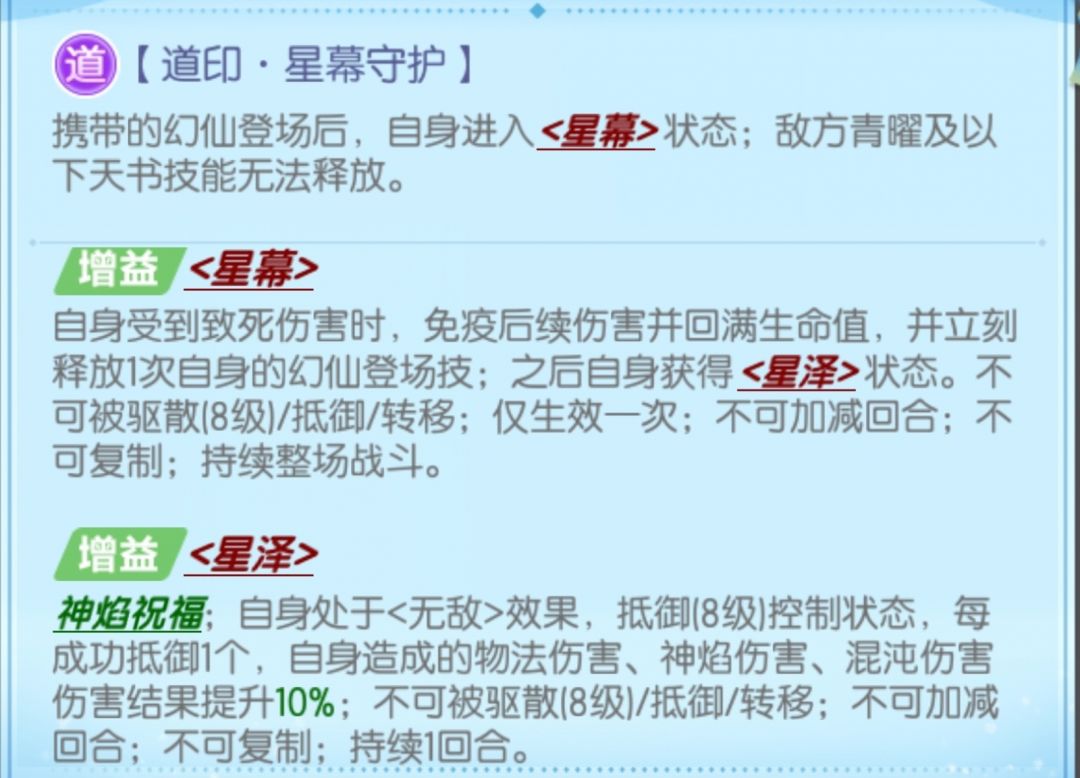 (2)、星幕效果与多给幻仙一条命区别不大,会重新套一遍登场技的护盾,等于复活到全盛时期。