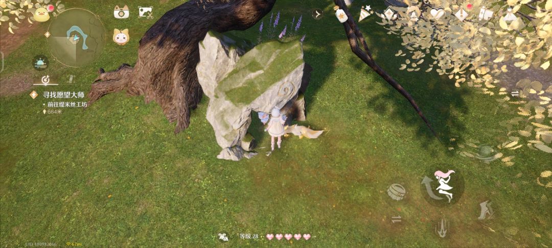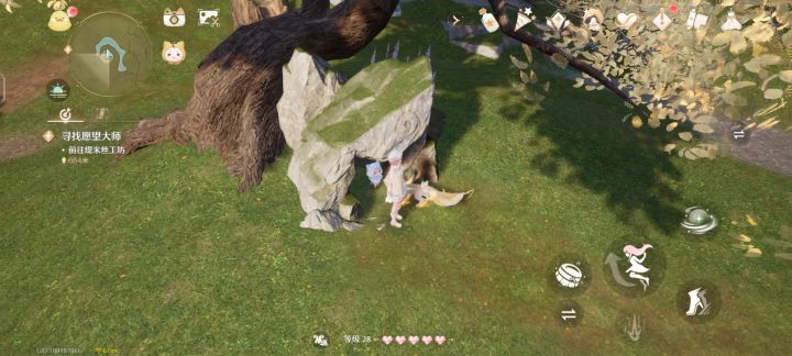 绕到洞口后面,跳到树上,等狐狸出去玩了比较远的地方立刻跳到洞口堵住它回去的路,等它自己回洞口或者发一个净化惊一下它,然后长按清洁,在狐狸经过你身边有冒出清洁图标立刻放手,OK了。