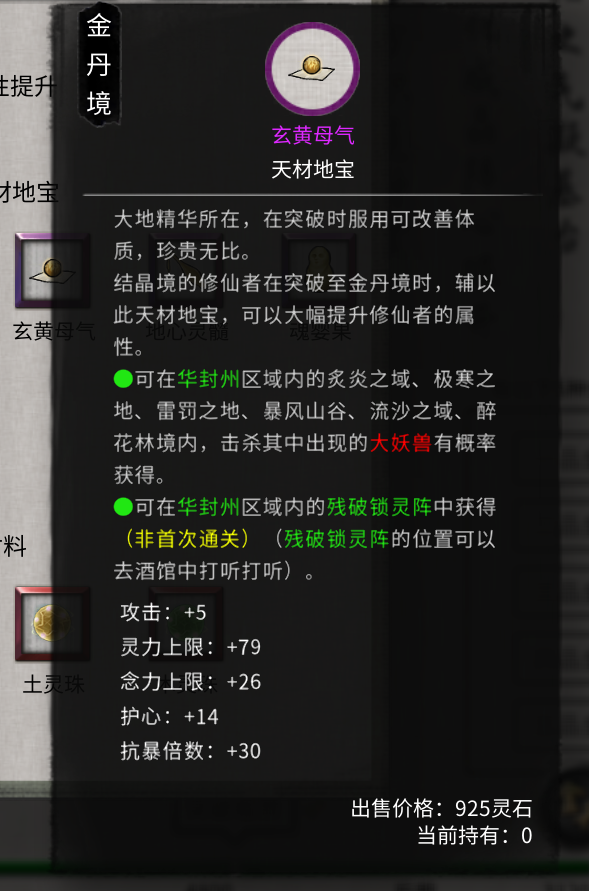 还有提升境界的时候材料红色的和橙色的不一定是最好的,像这个金丹的提供的材料属性到后期跟没有一样