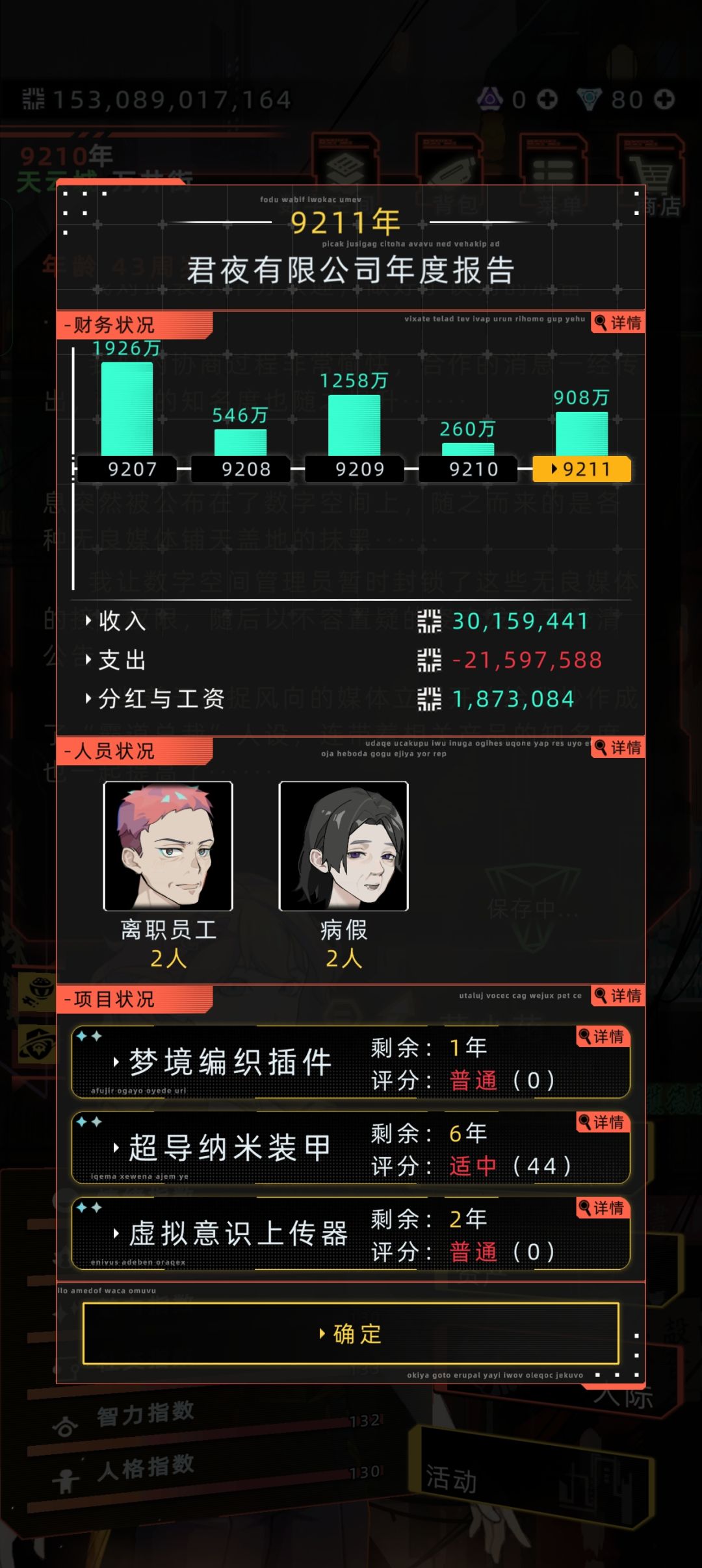 3.前期家族和公司都是需要亏损运营的,否则升级很慢,请做好心理准备