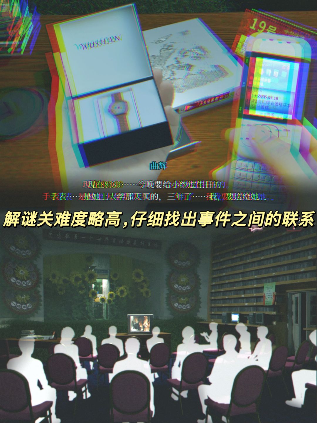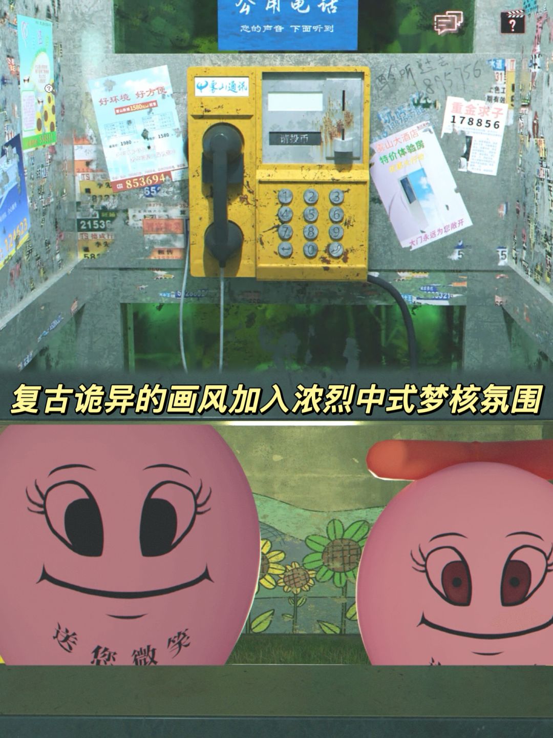 ✨这款游戏的时代背景设置在了《当鸣》的10年前,大约2000年左右,地点还是在我们熟悉的雾山镇。依旧复古诡异的画风,年代感很强,加入了浓烈的中式梦核氛围!解谜部分有些难度,需要关联很多线索,但也会给出提示,既烧脑又抽象!总体而言还不错,可冲!