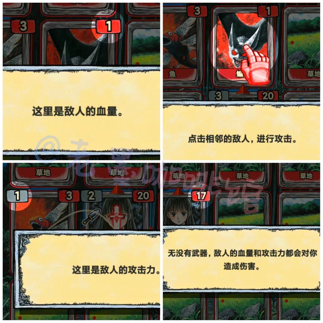 初始玩家只有20点血量,被攻击力高的怪一次就可能打掉四、五点,所以每走一步都要计算上下左右卡牌会引起的数值变化。