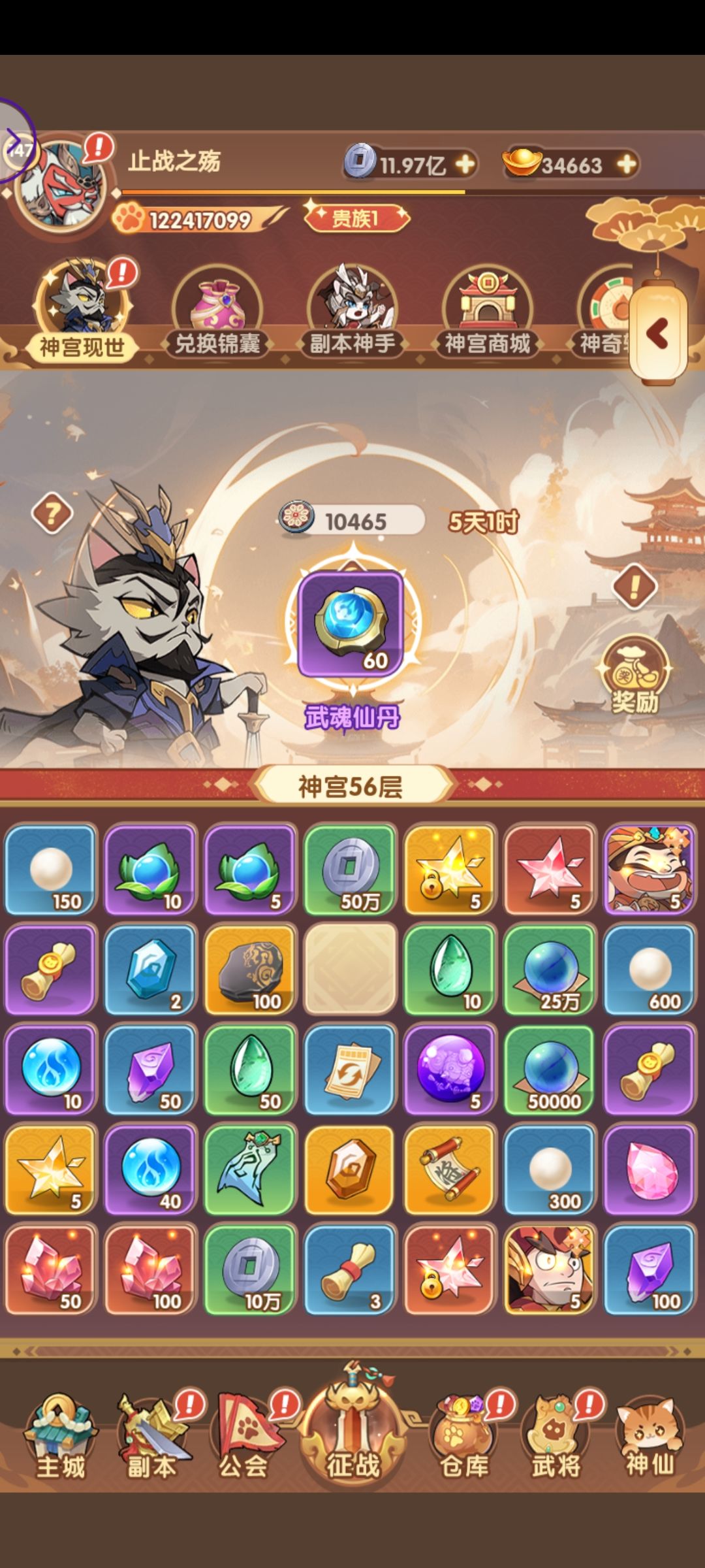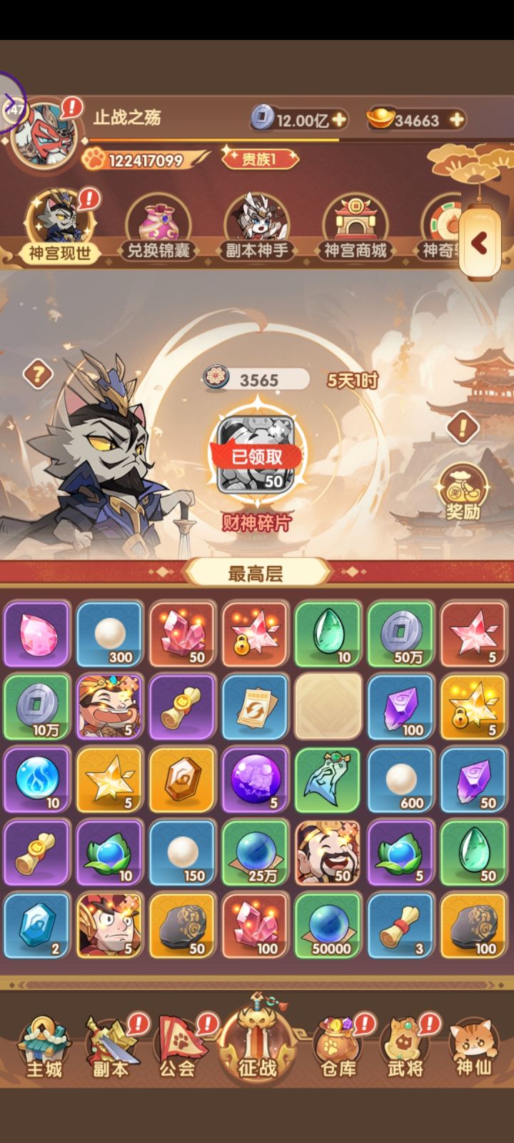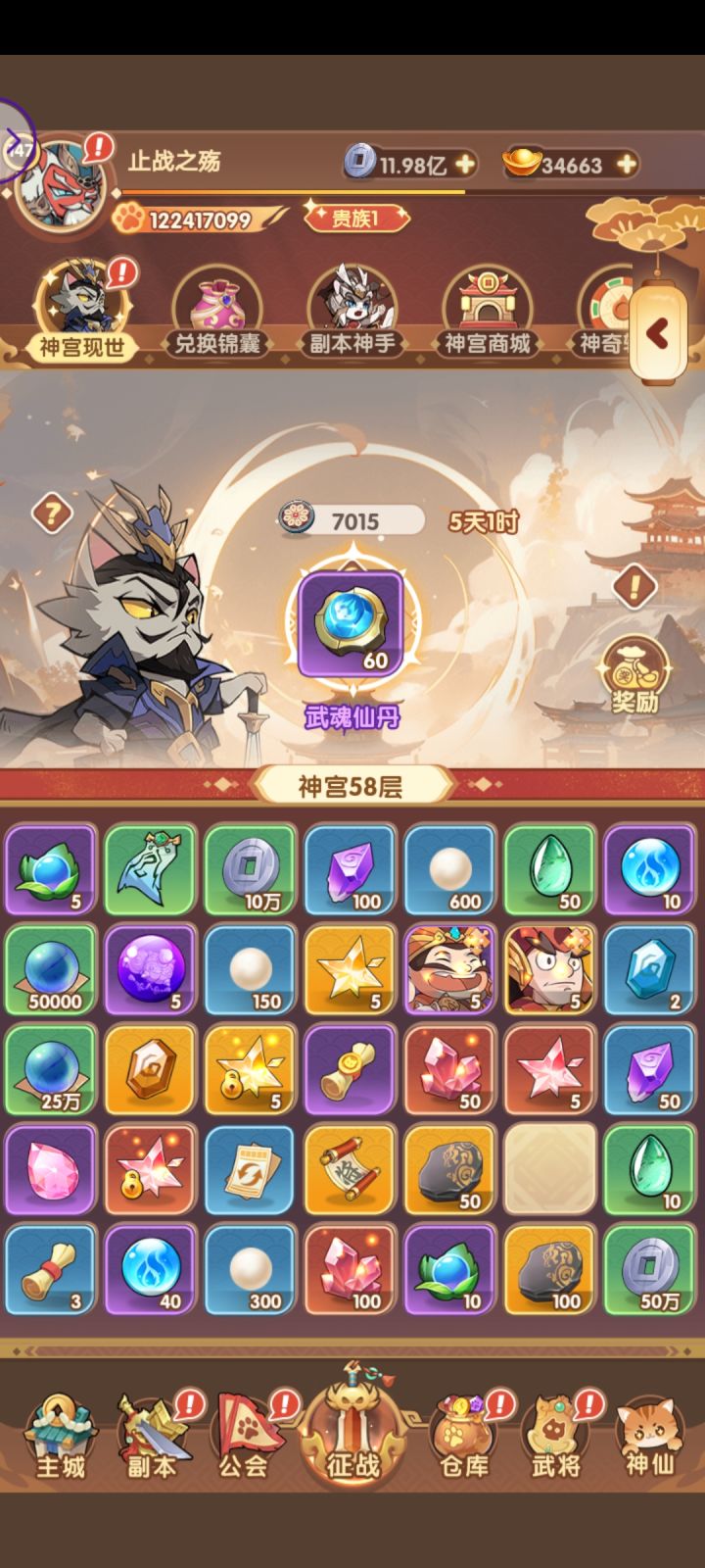 我也是点着点着突然发觉换武魂仙丹的性价比并不高,一个虎符可以换30个武魂仙丹,而前期奖励与其拿仙丹还不如拿点神仙碎片或者神兵碎片,虽然这些可以通过打巅峰赛换宝箱获取,但周期太长,一期顶多换50碎片,10个虎符换50金色神仙,都可以换300仙丹了,更别说红色神仙和红色神兵,所以我全部换的碎片。