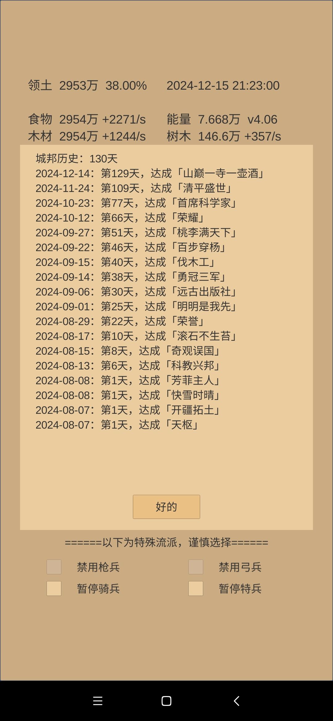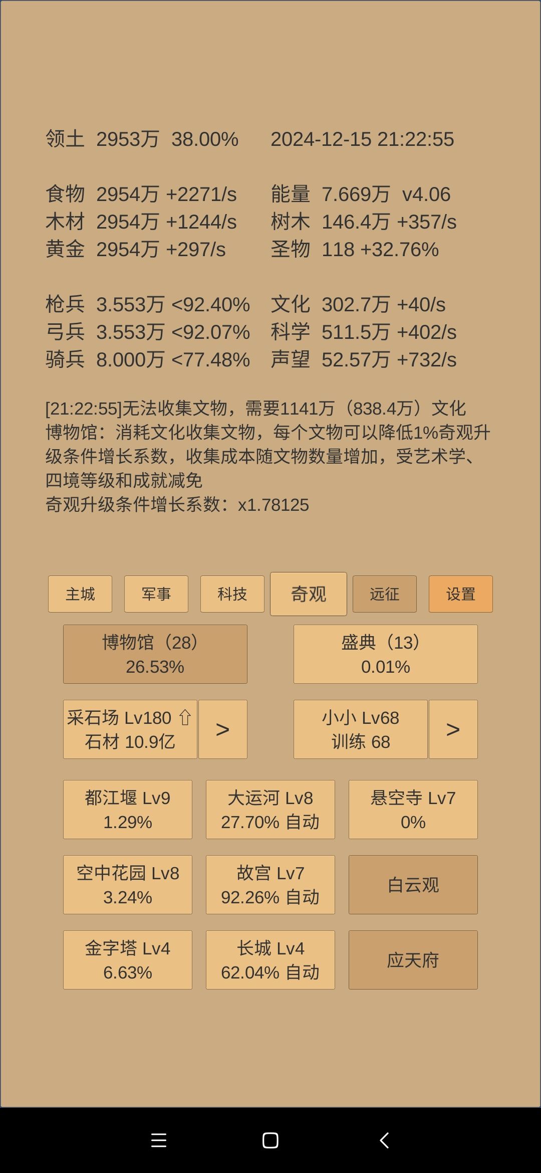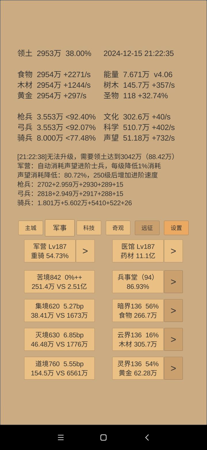 军事方面:暂无爆兵打算,继续将现有兵精完