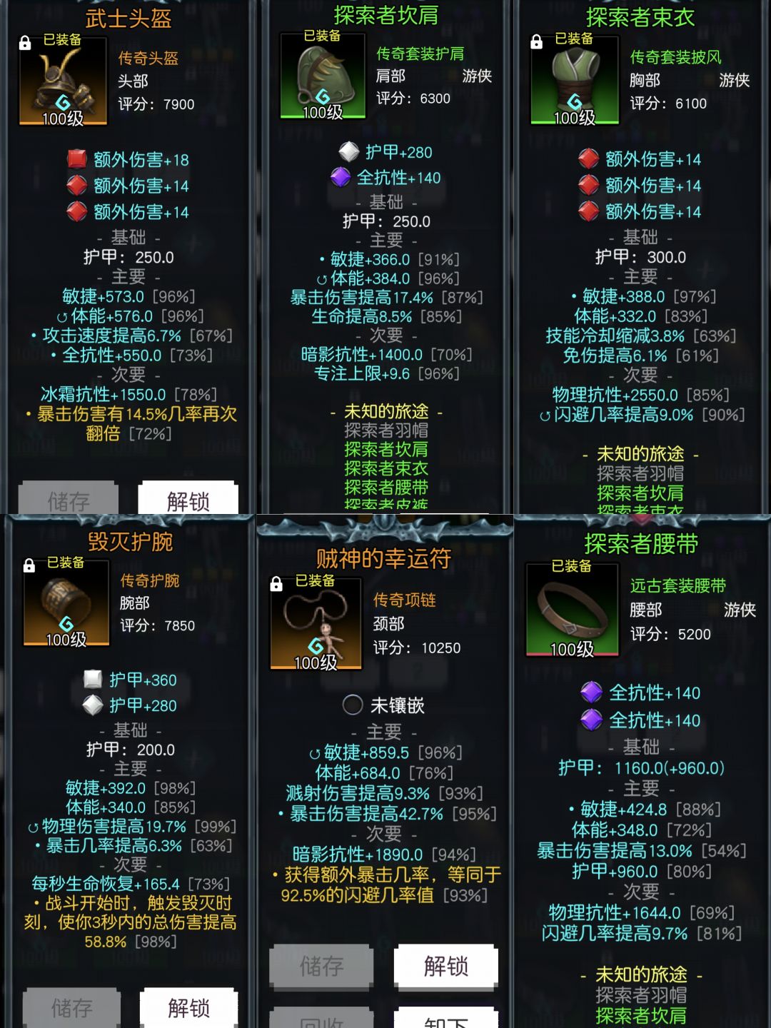 装备如下,我是直接2个猩红戒,注意这套bd必选有猩红戒和誓约武器这2个核心装备!装备一定都要带敏捷体能!暴击和闪避也是必不可少的,靠贼神项链开烟雾弹技能堆到100%暴击!装备属性一定要带一条溅射伤害,或者天赋点出溅射伤害!