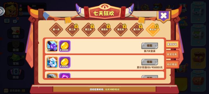 七天狂欢活动为新人最大的福利,达成相应条件可以获得丰厚奖励和海量资源,零氪也能做完 ,但首冲会获得强力圣光化身,前期闯关更舒服