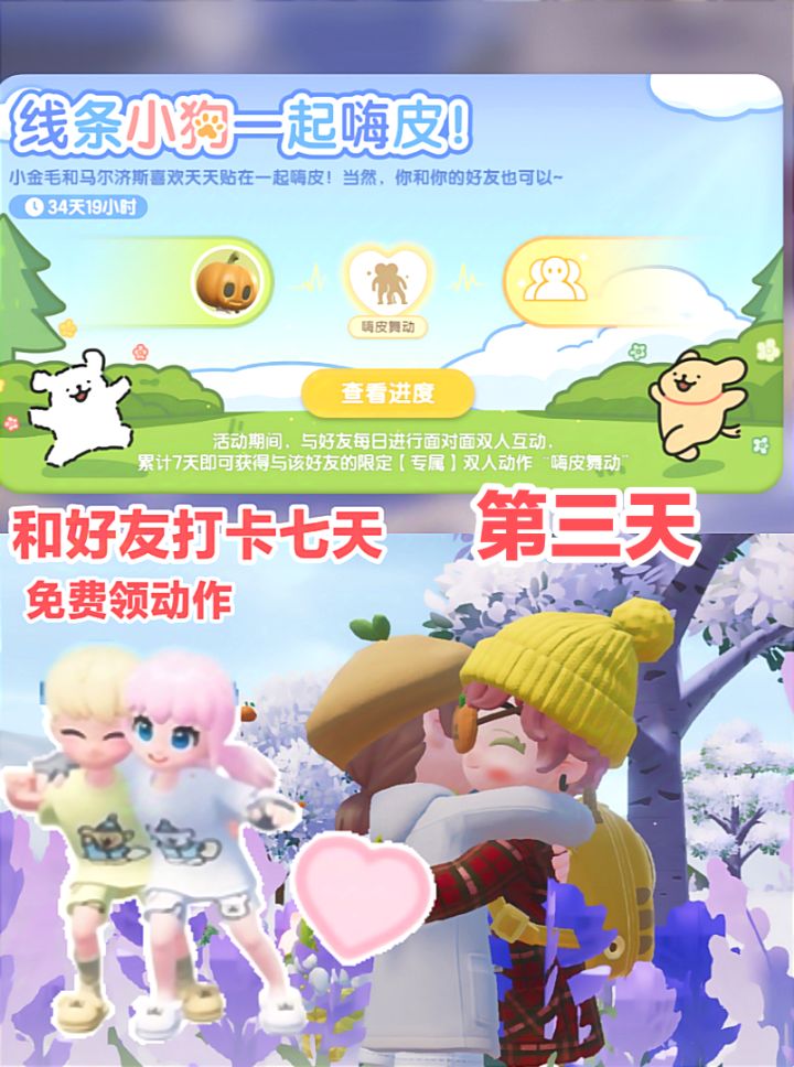 三,🌹今天和好友打卡,互动动作,累计七天就可以获取新动作喔!