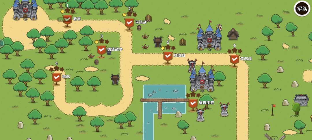 开局造3到5个金币建筑,拍一个人口,出一个小剑客或者直接憋决斗者,决斗者是最肉的兵,然后决斗者去单破对面弱的城堡,获取人口后,建造更多的经济建筑(钱,食物或者魔杖),然后每个法师兵种拉一个,强制移动,控制决斗者偷家,要不然对面兵太多顶不住,我目前通到第五关玩了半小时,那个塔防的有点逆天。