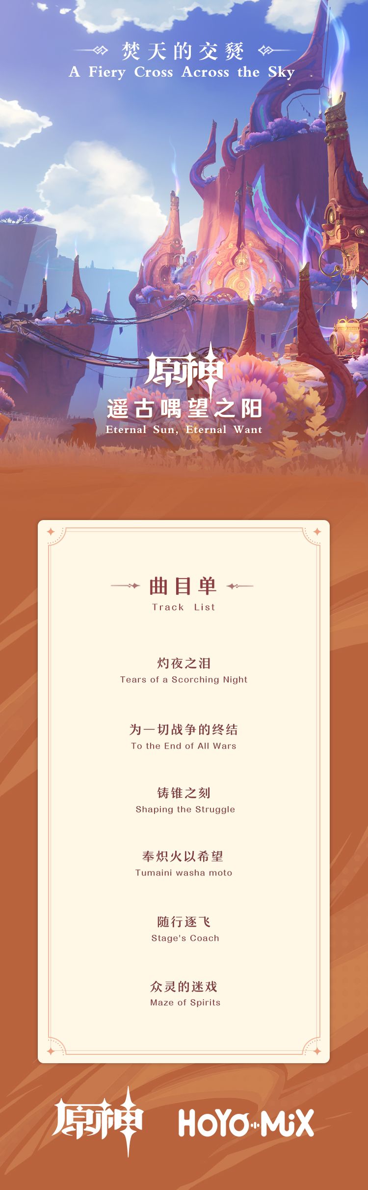 亲爱的旅行者,《原神》第二张纳塔篇OST「遥古喁望之阳 Eternal Sun, Eternal Want」现已正式上线。