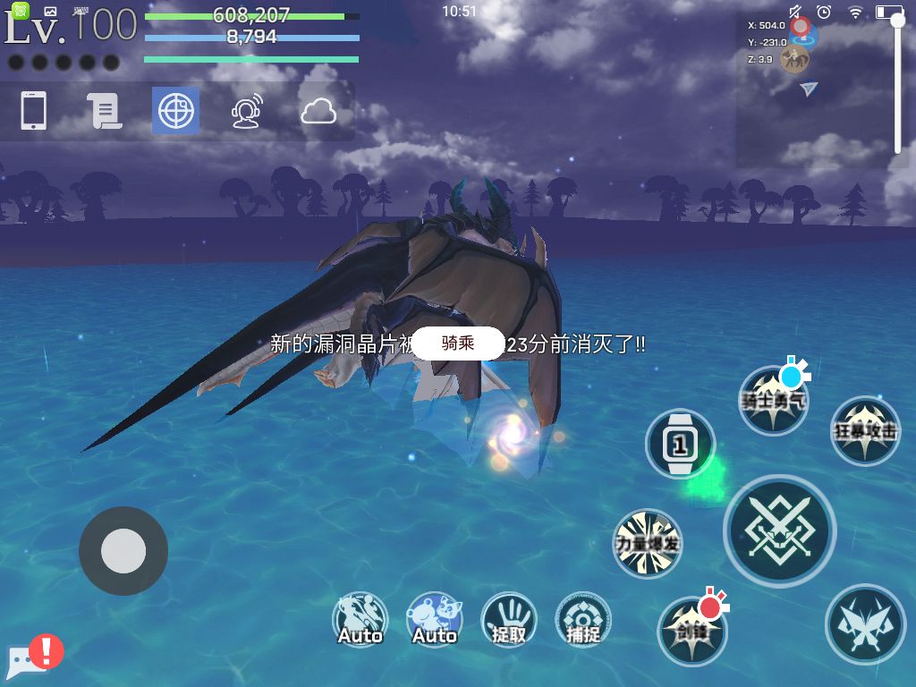 然后来到这里去砍鲸鱼,注意在进传送门之前先把宠物停止,不然那只鲨鱼有可能会来把你宠物杀了(此位置为四区海霞村,五区传送口旁边的海)