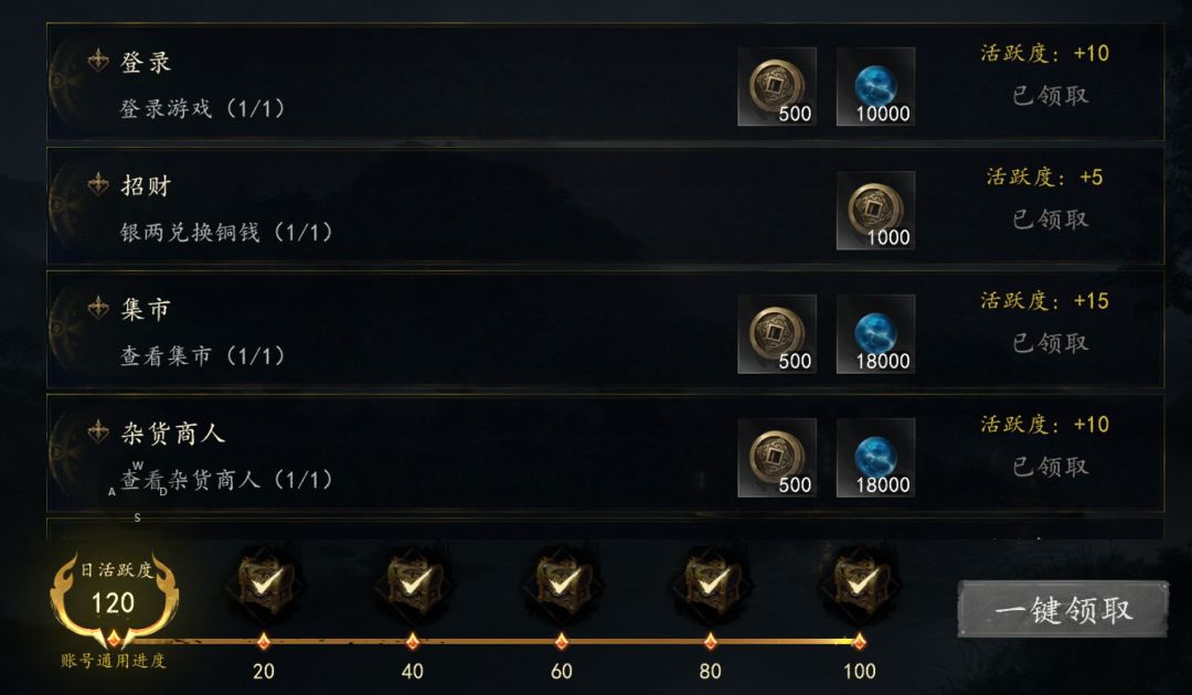 日常活跃任务(推荐活跃值达100)