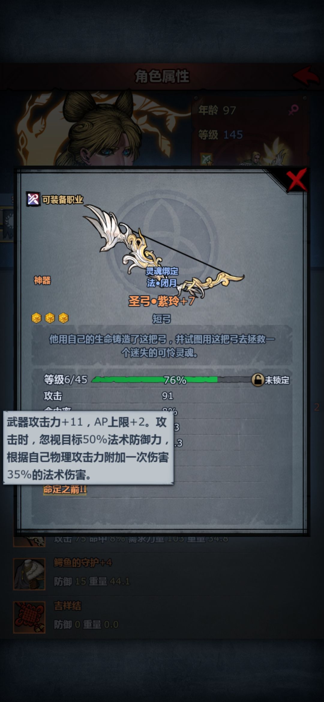 然后讲这个生命之灵(皮甲),这个皮甲实话说强度挺高的,对短弓职业基本上是大加强了。