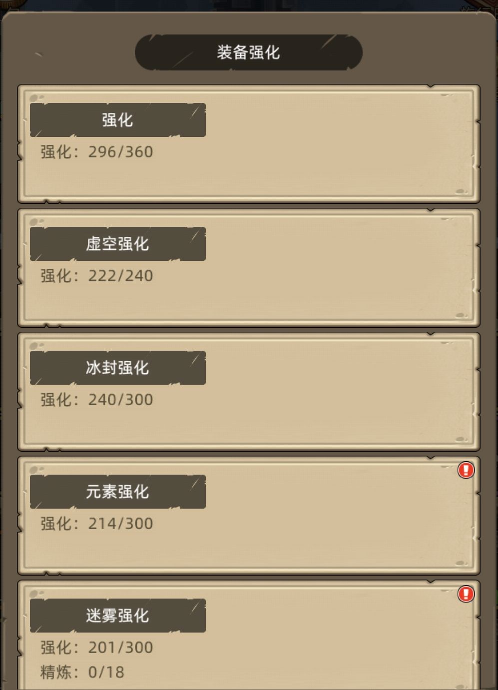 5.装备强化优先强化满上面的,花费资源少,提升性价比更高