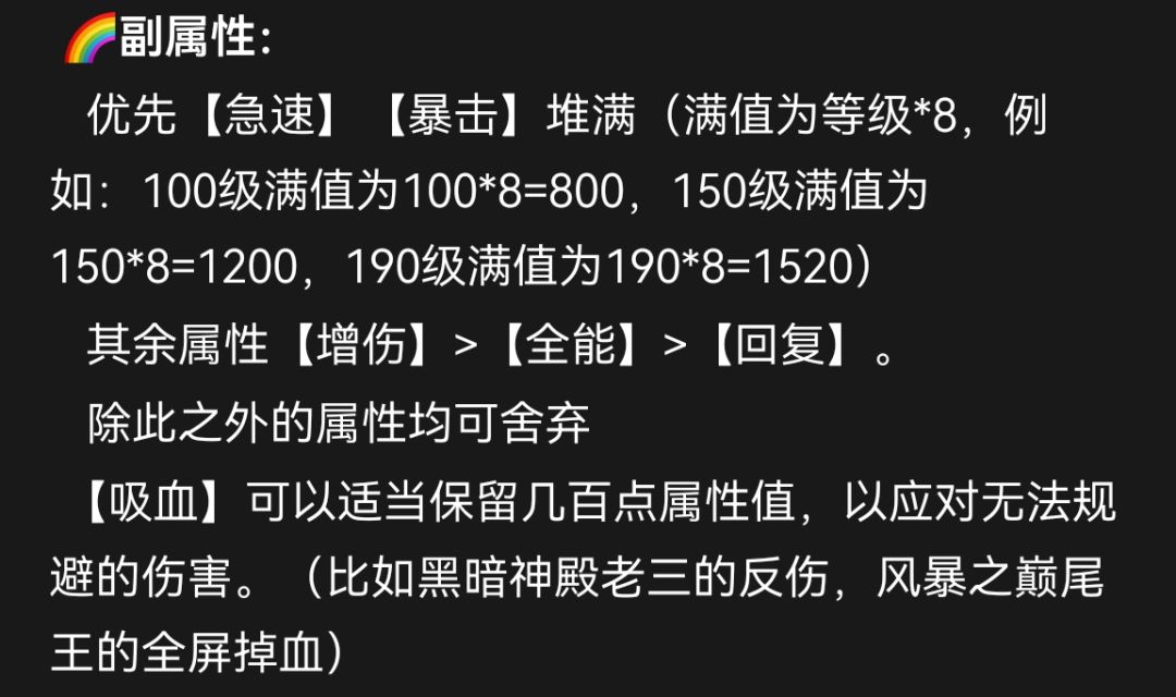 其余副属性尽可能给到增伤全能回复