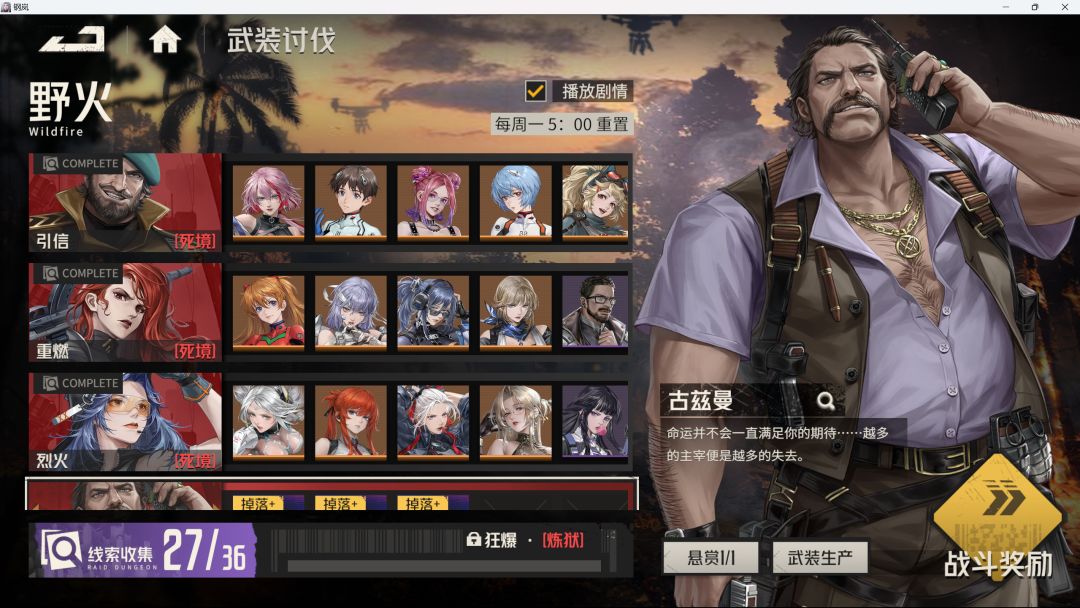 【钢岚2.0】武装讨伐-野火-死境-全4关(零氪不换人1次全成就版)