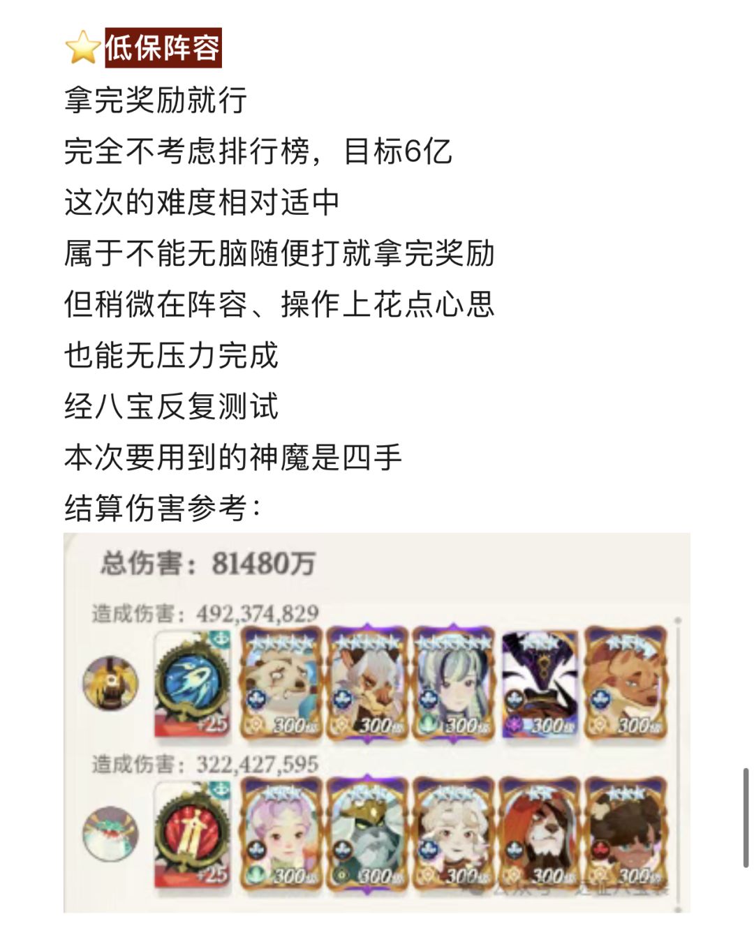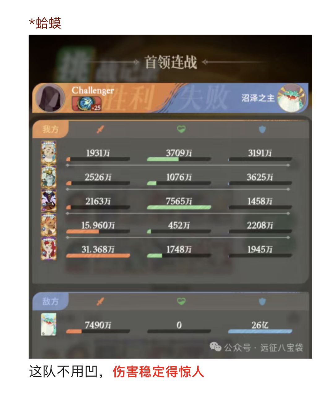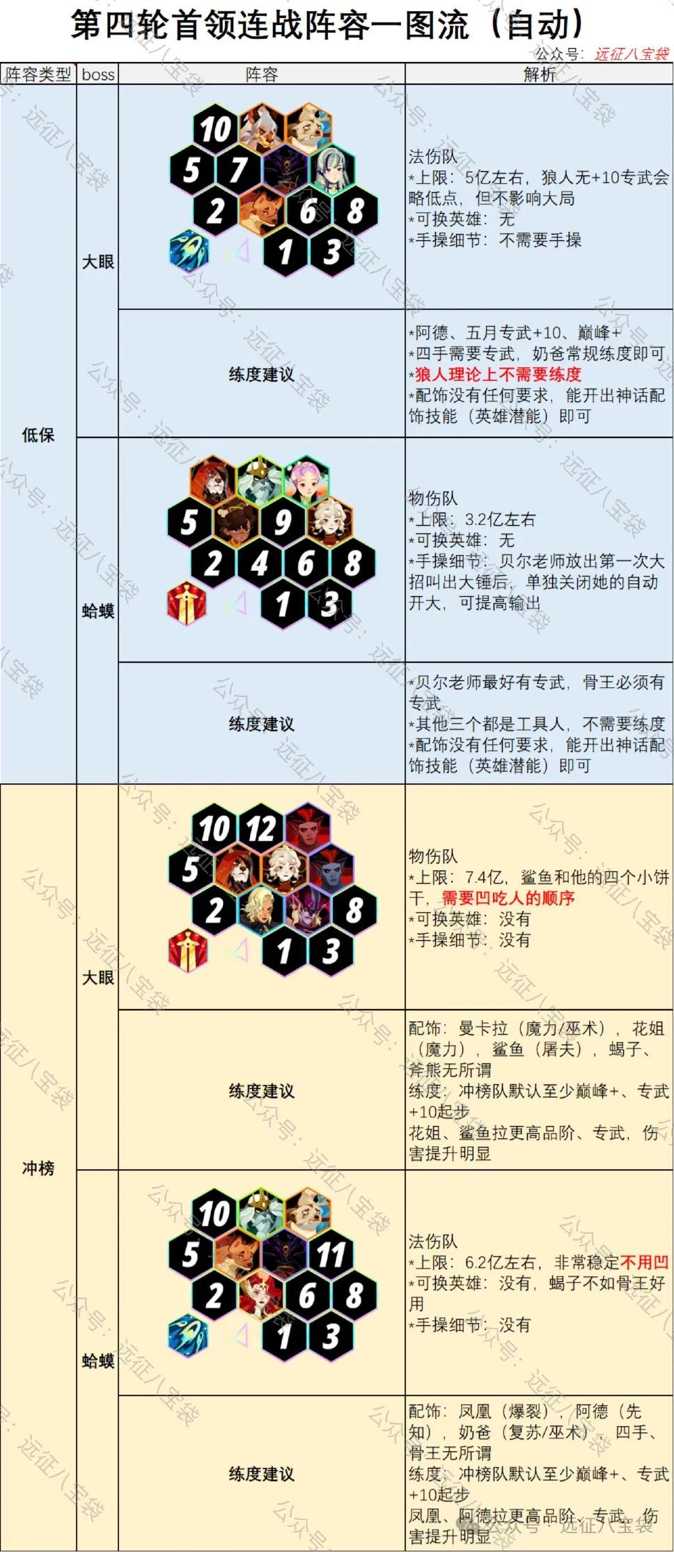 【远征八宝袋】第四轮首领连战(大眼、蛤蟆)冲榜、低保阵容