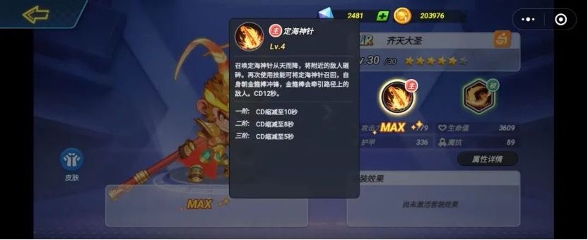 首先介绍一下齐天大圣的主动技能:定海神针。