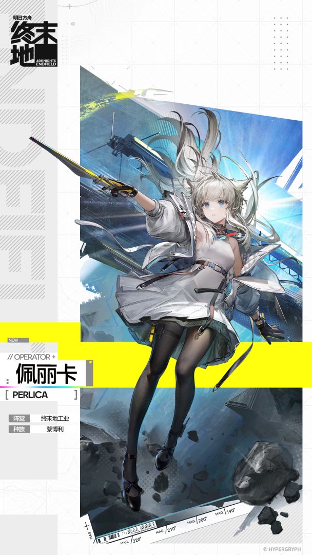 佩丽卡,终末地工业的监督和官方发言人,同时负责管理和推进协议技术的开发和应用,也承担帝江号的管理工作。