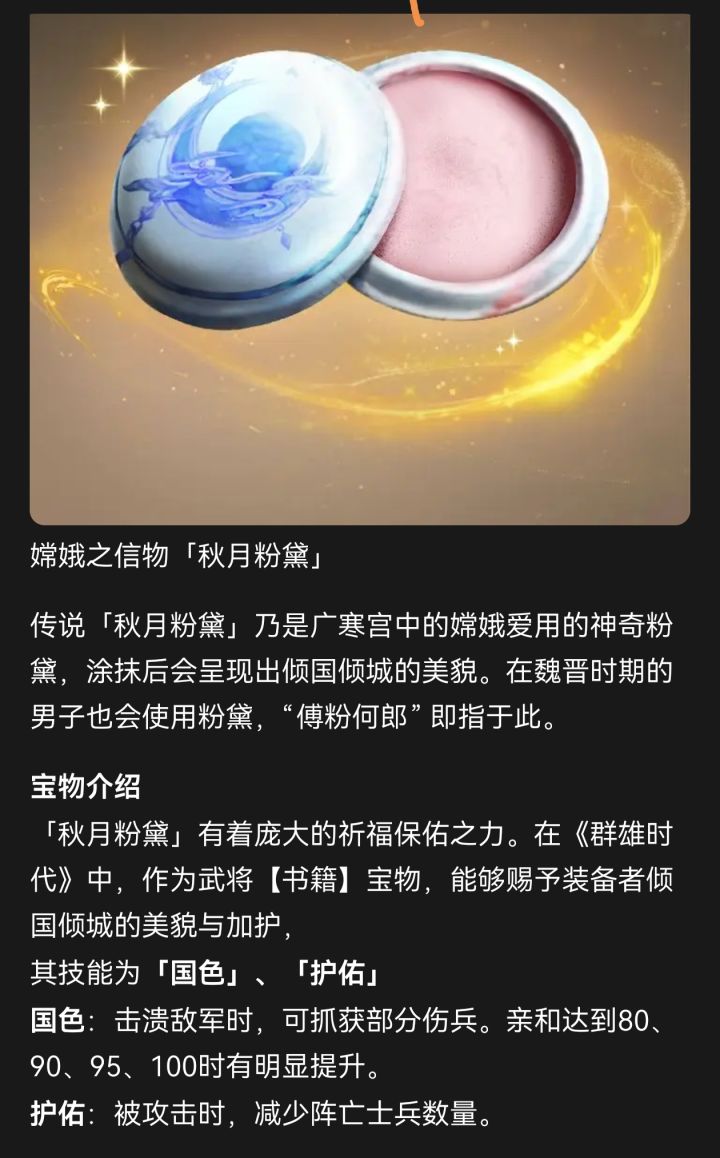 目前主流特种兵除了飞熊基本成型,收齐秋月粉黛就凑齐国色宝物了。本来是打算买秋月的。