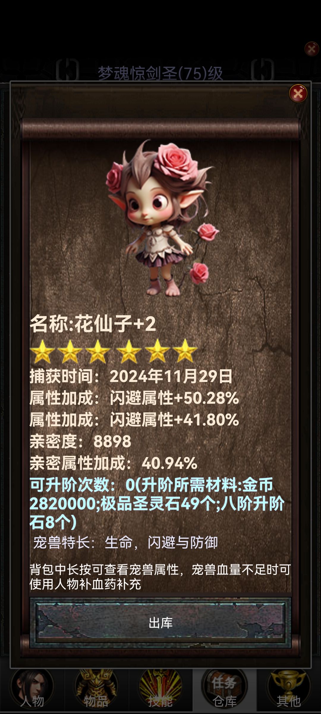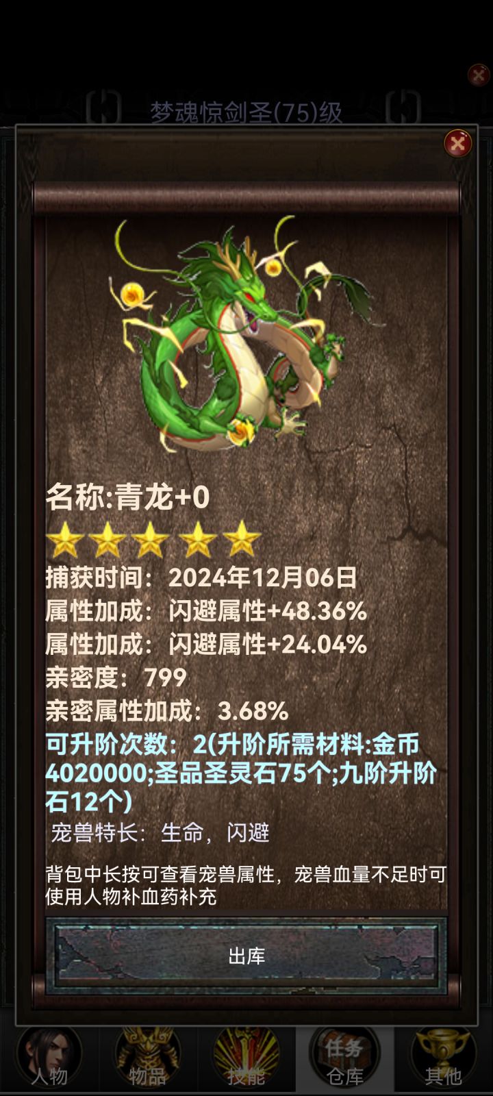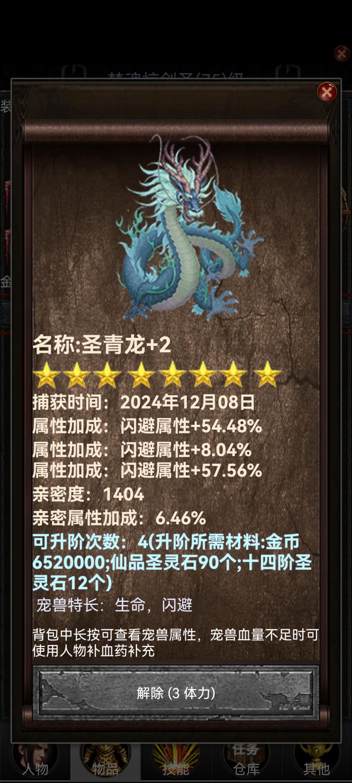 能抓宠物后,就开始抓闪避宠,从山蛟,山蛟王抓到花仙子,提升都比较大,但需要闪避加成较高,最好需要70+的闪避。在这个过程中,如果过不去boss,可以给宠物进阶,能够很大程度上提高宠物的生存能力,更容易过关。前期的山蛟与山蛟王的使用期非常短,所以可以对其要求不太高,辅助过关到花仙子即可。抓到高闪花仙子,就需要重点培养花仙子了,因为花仙子的使用期比较长,需要+2并且保证有较高的亲密度,才能在等级较低时更快过图。高闪花仙子可以一直用到圣青龙,但如果到青龙地图时,花仙子的亲密度还没到达一半,那最好换上一只高闪青龙,属性会高很多,更容易过图。到圣青龙地图后,需要刷一只高闪(80+)的圣青龙,然后后续将其+2,甚至+3来过塔。