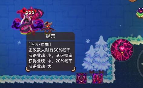 色欲的被动为击杀怪物掉落业魂,业魂*小为一点,业魂*中为两点,业魂*大为五点,因此击败色欲之后无论你有没有变身击杀一个怪物最少也会掉落一个业魂。