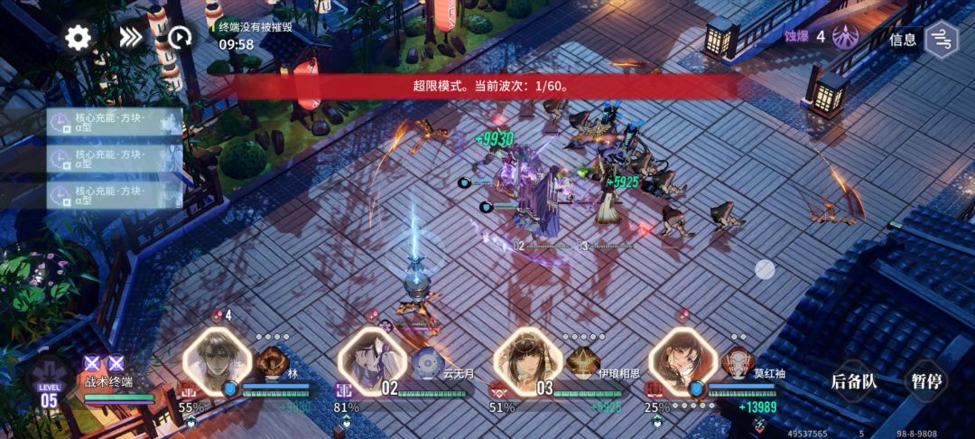 遇到优先攻击终端的怪物波次时【好像是46和51】,需要手动操作,快速消灭怪物,保护终端。