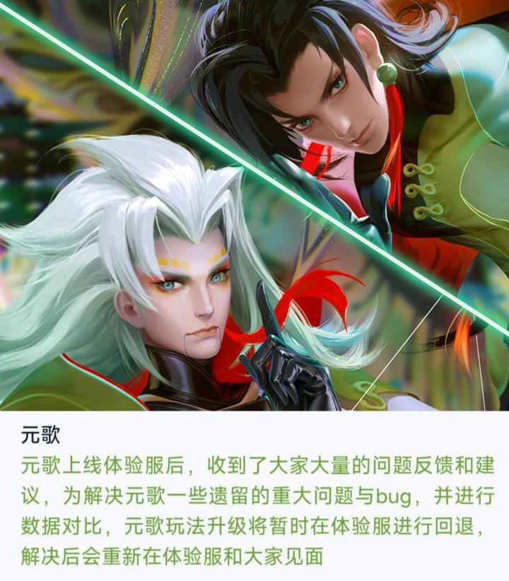 最近的公告宣布,因为在体验服关于元歌新玩法上线后的体验,存在着很多的问题和 bug。