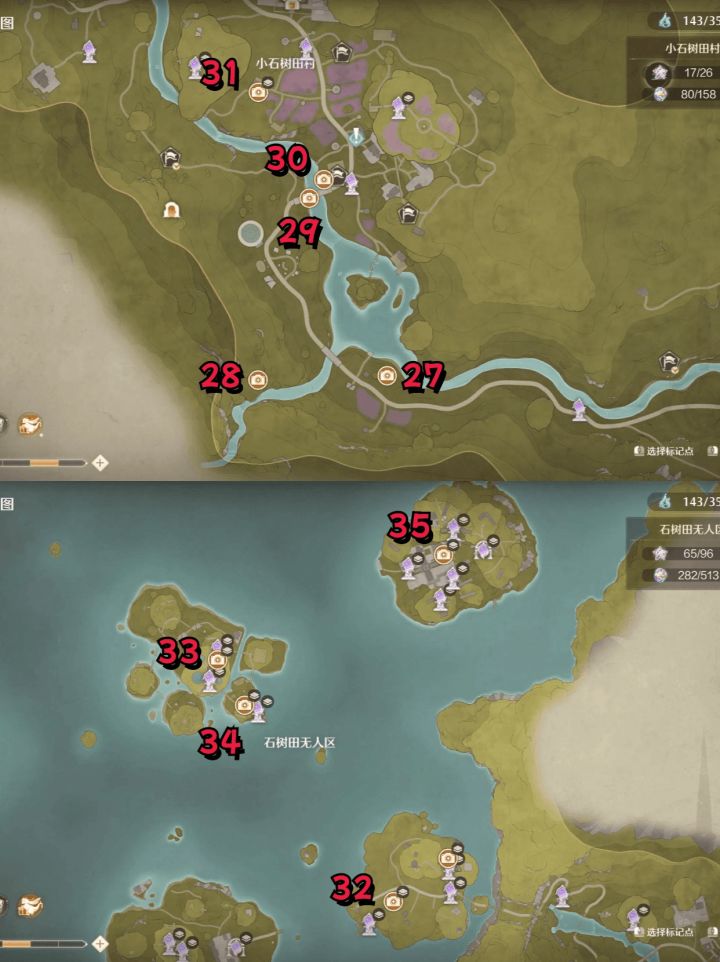 本部份一共标注了18个点位,其中地图中标记了⭐️的都是需要在山洞里进行拍照,也为了方便大家,已经把附近的传送点标上了