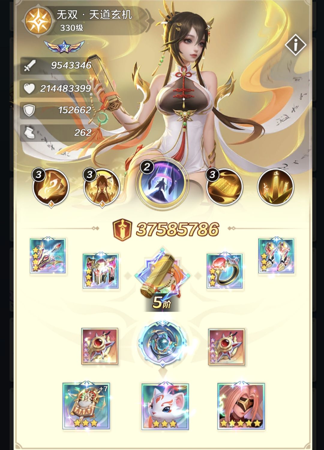 ,这次冰冰首次返场,也总算给她上了神9,是时候实战来评测下了。如上图所示,我阵容单上冰冰,也能暴揍咱们战区跑路的榜一大佬,而我的冰冰硬件的搭配是: